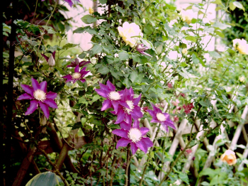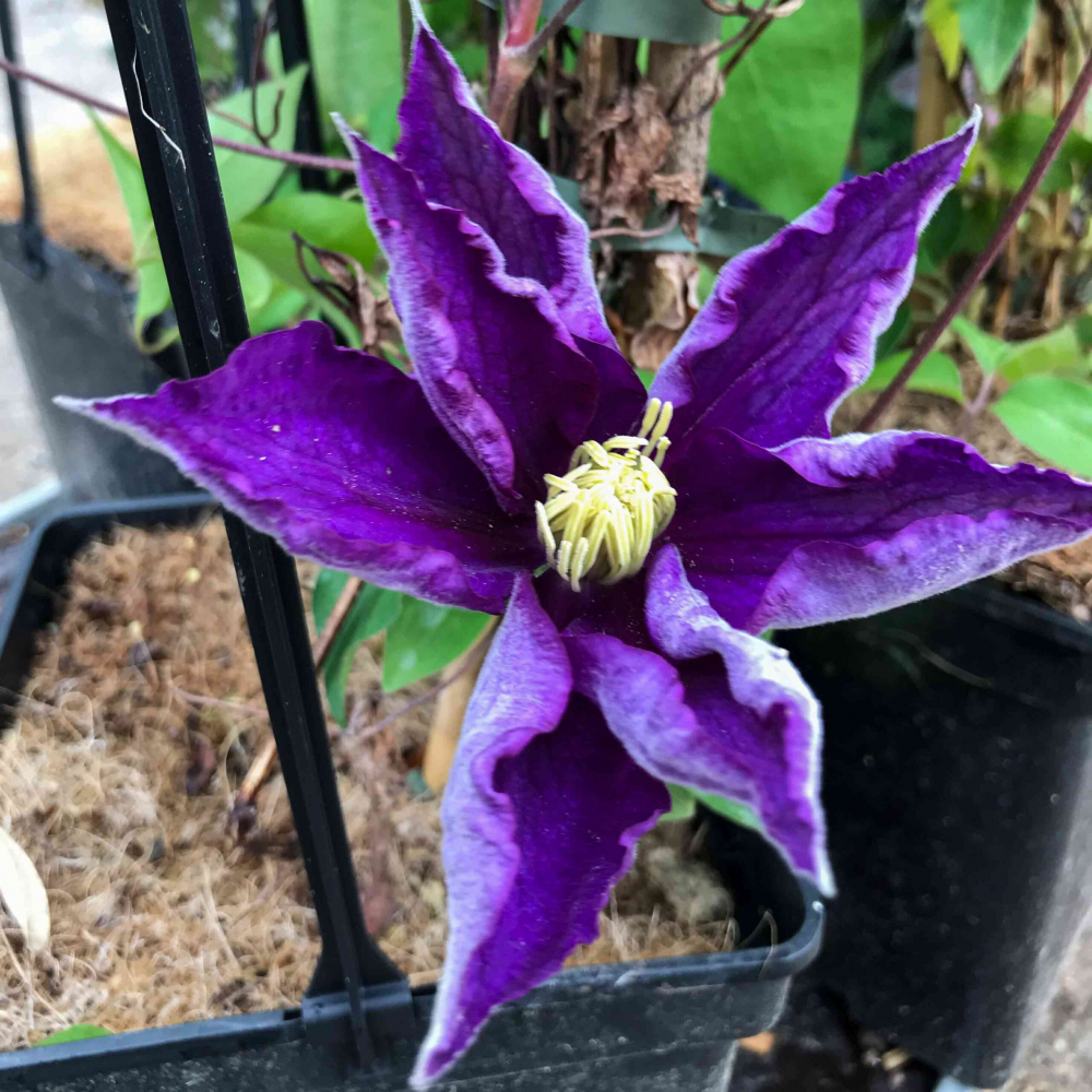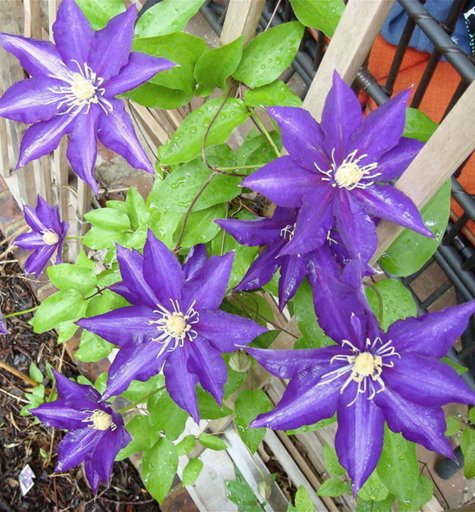 Mrazuvzdorná popínavá liana s výraznými voňavými fialovými súkvetiami.