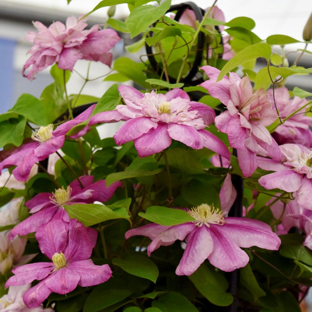 Mrazuvzdorná popínavá liana s výraznými voňavými fialovými súkvetiami.