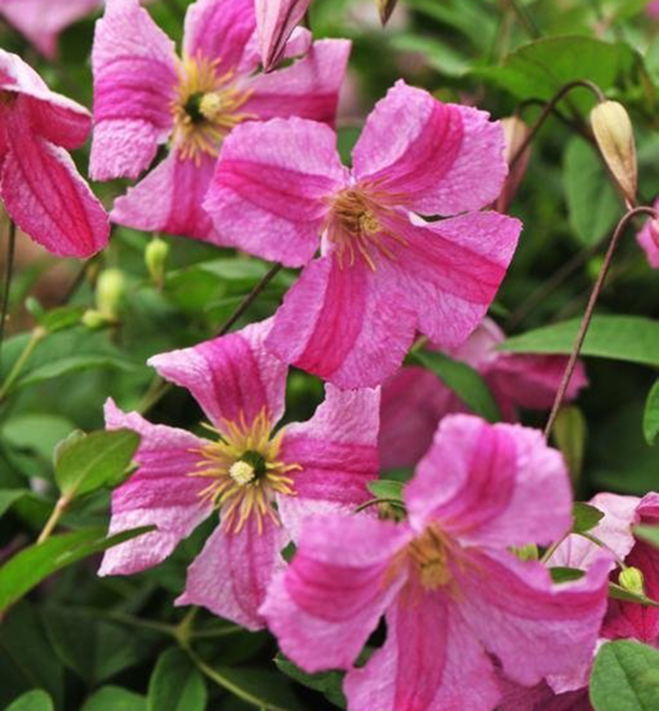 Plamienok s ružovými kvetmi zdobenými červeným pruhom uprostred okvetných lístkov.
