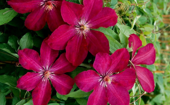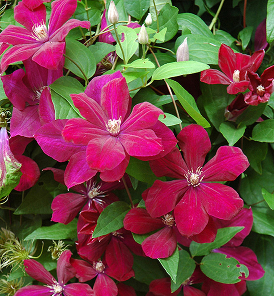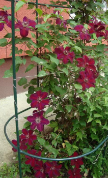 Mrazuvzdorná popínavá liana s výraznými voňavými fialovými súkvetiami.