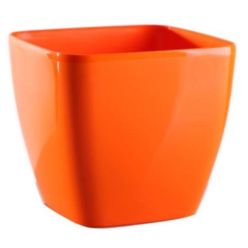Plastový kvetináč oranžovej farby v lesklom prevedení.