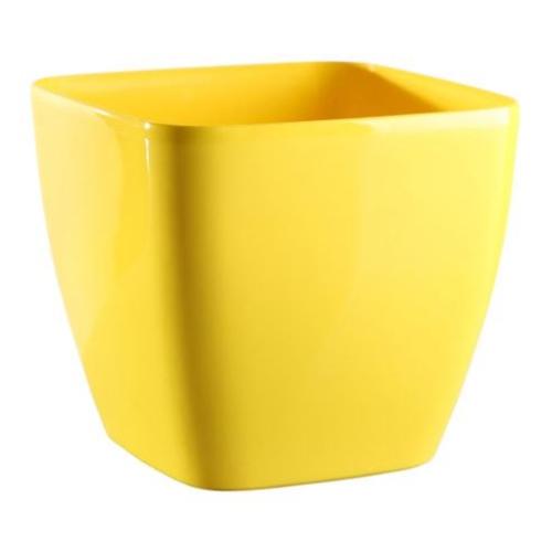 Plastový kvetináč žltej farby v lesklom prevedení.