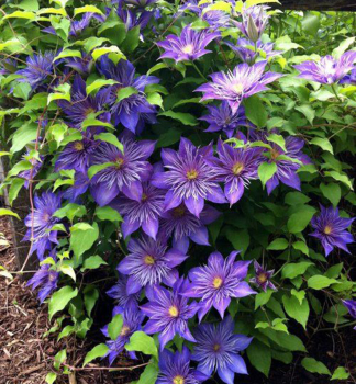 Remontantná odroda s plnými až poloplnými kvetmi fialovo-ružovej farby.
