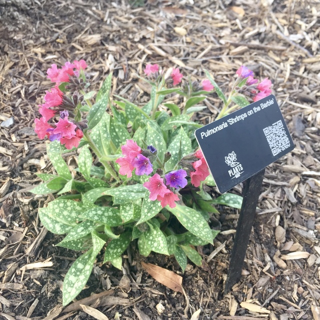 Charekteristika: Pľúcnik ´SHRIMPS ON THE BARBI´ je mimoriadne dekoratívna počas celej sezóny svojimi výraznými vajcovitými listami sviežej zelenej farby s bielymi škvrnami. Na začiatku jari sa objavujú ružové kvety, ktoré v sebe nesú fialový nádych. V kombinácii s listami vytvárajú neprehliadnuteľný kontrast.
