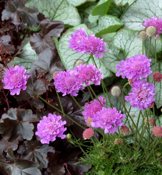 Aromatická letná trvalka s veľkými kvetmi ružovej farby so žltým hrdlom.