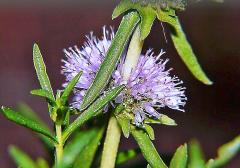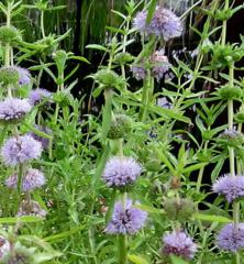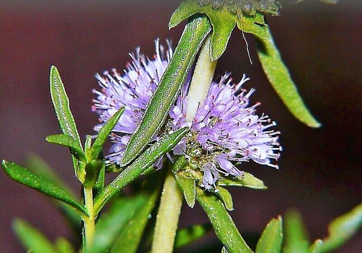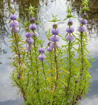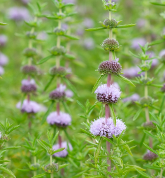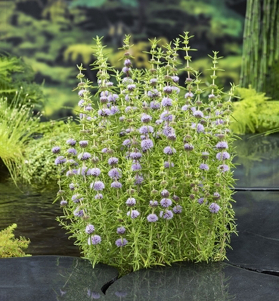 Zaujímavá vodná mäta so sviežimi zelenými listami a fialovými kvetmi.