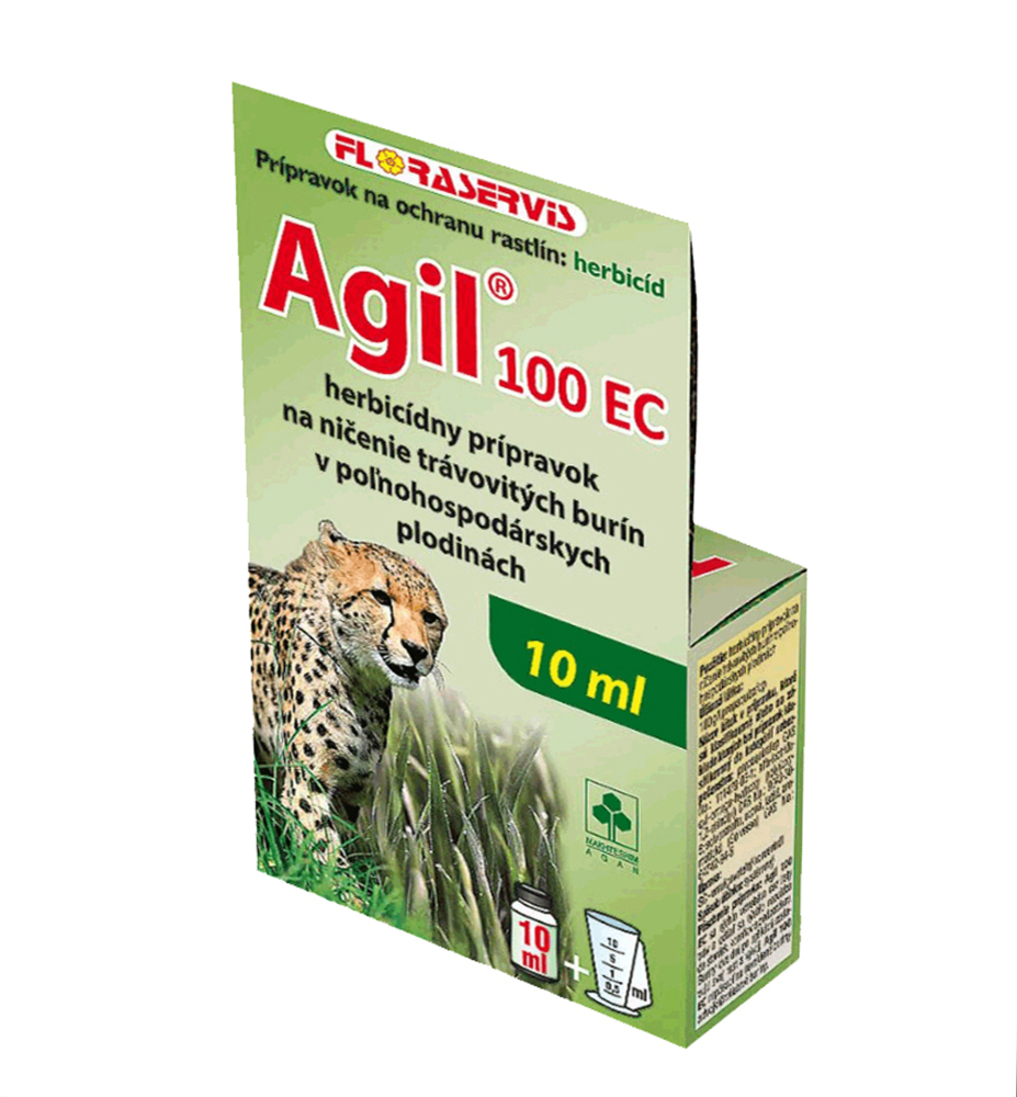Charakteristika: Postrekový prípravok ´Agil 100 EC´ ničí jednoročné a trváce trávovité buriny. Je to najrýchlejšie pôsobiaci graminicíd. Rýchlo sa vztrebáva do listov, stoniek, koreňov a odnoží. Zasiahnuté buriny už po dvoch dňoch zastavia rast. Dážď 1 hodinu po aplikácií neznižuje účinok.