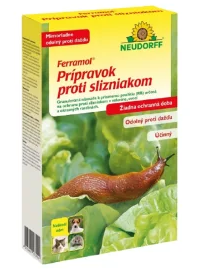 Charakteristika: Prírodný prípravok ´NEUDORFF FERRAMOL´ je mimoriadne účinný, po požere návnady sa slimáky stiahnú do úkrytu, kde hynú s pocitom nasýtenia. Je bezpečný po náhodnom použití pre domácich miláčikov (psy, mačky), aj pre iné zvieratá (ježky, dážďovky, včely, vtáky. Je momoriadne odolný proti dažďu - pri vlhkosti granulky napučia a sú pre slimáky ešte atraktívnejšie. Účinok prípravku sa dažďom neznižuje. Účinná látka – fosforečnan železitý.