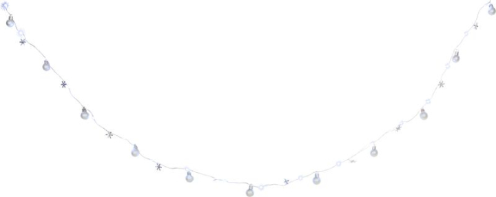 Reťaz MAGICHOME 20 LED studená biela, s guľami a vločkami, strieborná, 2xAA