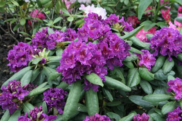 Obľúbený zakrslý rododendron s drobnými listami a množstvom fialových kvetov.