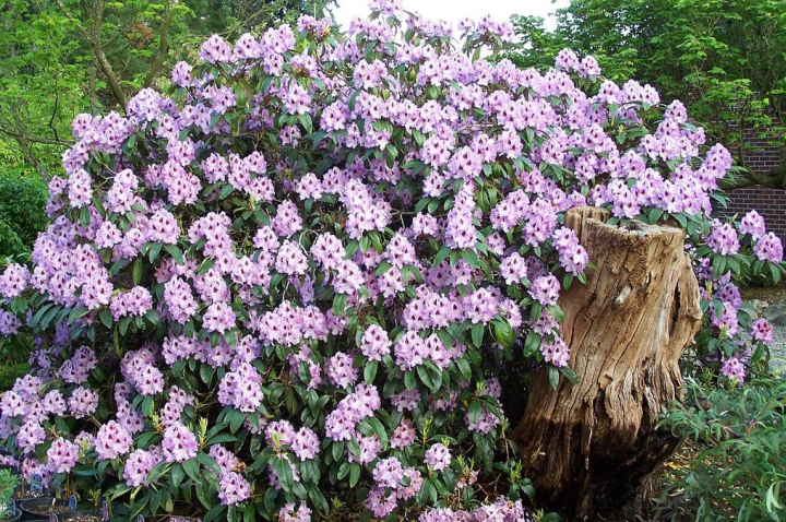 Obľúbený zakrslý rododendron s drobnými listami a množstvom fialových kvetov.