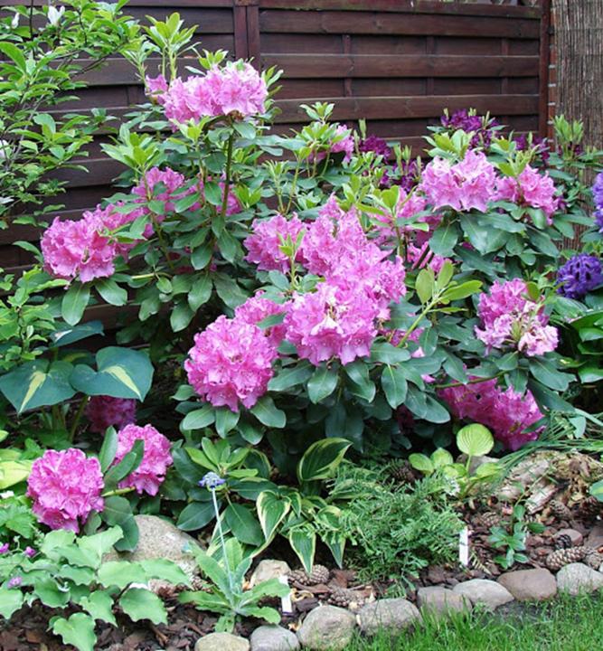 Obľúbený zakrslý rododendron s drobnými listami a množstvom fialových kvetov.