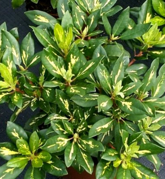 Nízky kompaktný stálezelený ker so záplavou veľkých kvetov zlatožltej farby.