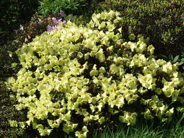 Nízky kompaktný stálezelený ker so záplavou veľkých kvetov zlatožltej farby.