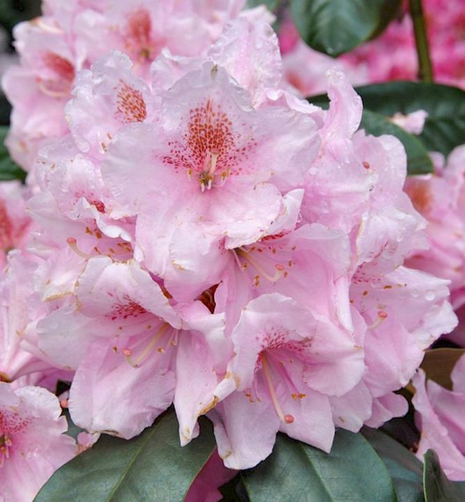 Romanticky pôsobiaca veľkokvetá azalka s pastelovoružovými kvetmi a príjemnou vôňou.