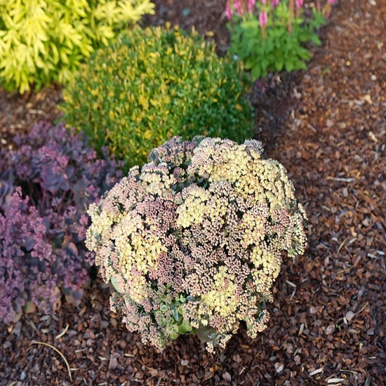 Charakteristika: Rozchodník ´GLOBE YELLOW´ je nová atraktívna odroda s dužinatými listami tmavej purpurovofialovej až šedofialovej farby. Vytvára vzpriamený hustý trs, ktorý dorastá do výšky 25 - 30 cm. Od júla sa z ružových pukov rozvíjajú krémovožlté kvety, ktoré sú veľkým lákadlom hmyzu. Vysádzame ho do zmiešaných trvalkových záhonov, veľmi dekoratívne vyzerá aj vysadený v kvetináčoch. Dobre sa kombinuje s okrasnými trávami, astrami a tiež zelenými kultivarmi rozchodníka.
