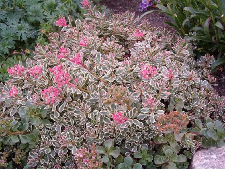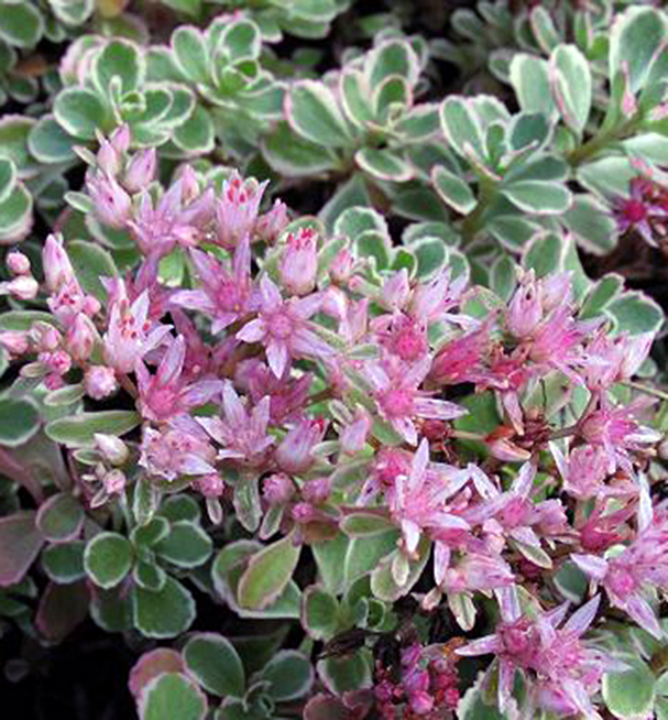 Charakteristika: Rozchodník pochybný ´VARIEGATUM´ patrí medzi pôdopokryvné rastliny, ktoré za krátky čas vytvoria husté koberce bielo zelených listov s jemným ružovým nádychom. Odroda kvitne od júla atraktívnymi ružovými kvetmi hviezdicovitého tvaru. Odroda dorastá do výšky 20 cm. Rozchodník je vhodný na výsadbu do skaliek, kamenných stien alebo na okraje záhonov.