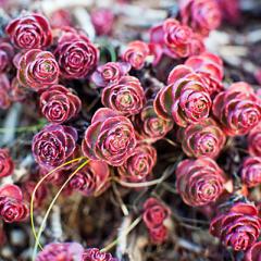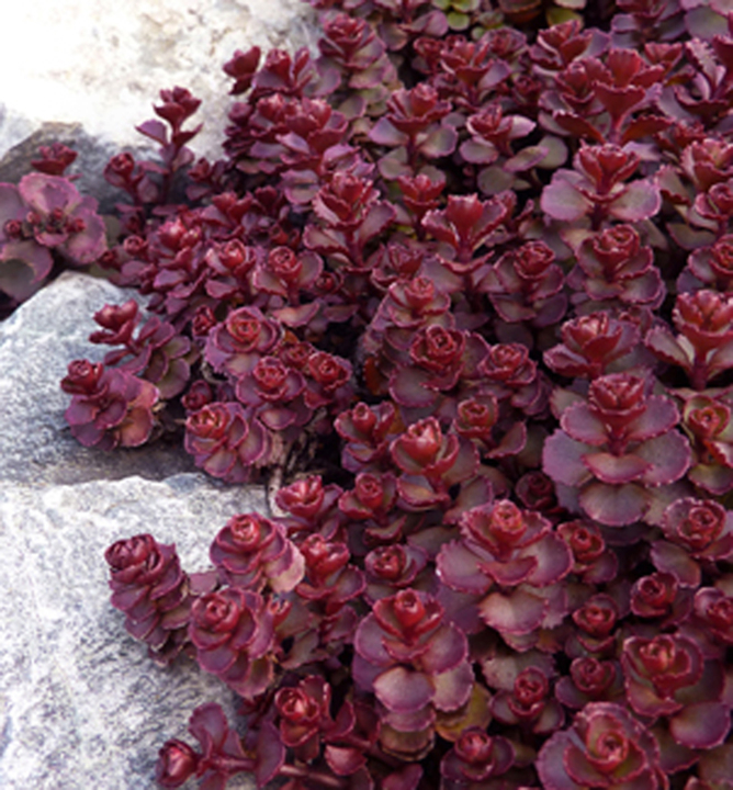 Obľúbený červenolistý kobercovitý rozchodník s ružovočervenými kvetmi.