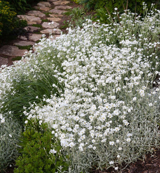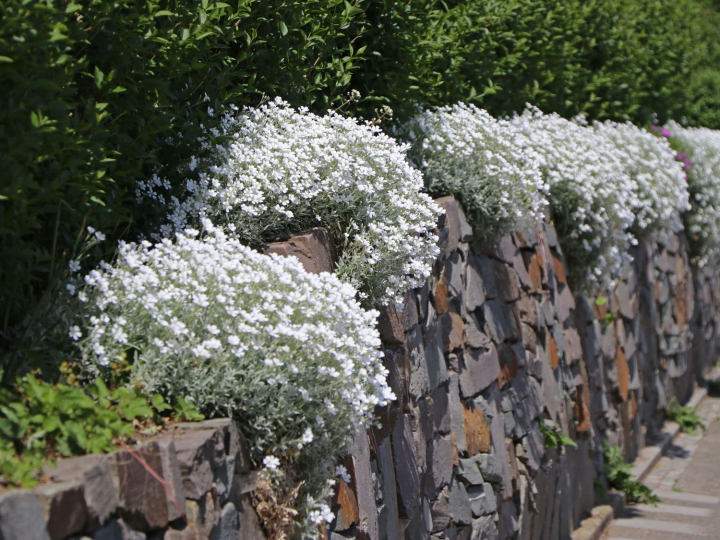 Pôdopokryvná trvalka s množstvom bielych kvetov vhodná aj k okoliu jazierok.