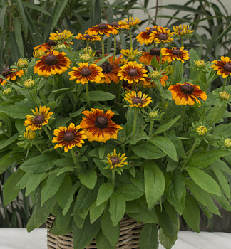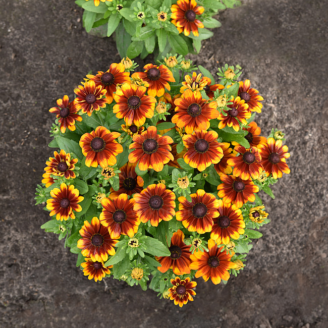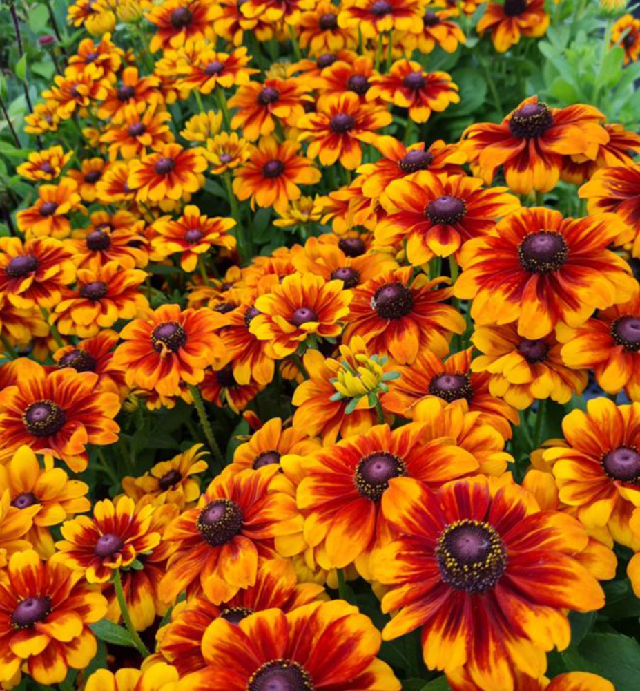 Obľúbená remontantná letná trvalka s dvojfarebnými žlto-červenými kvetmi.