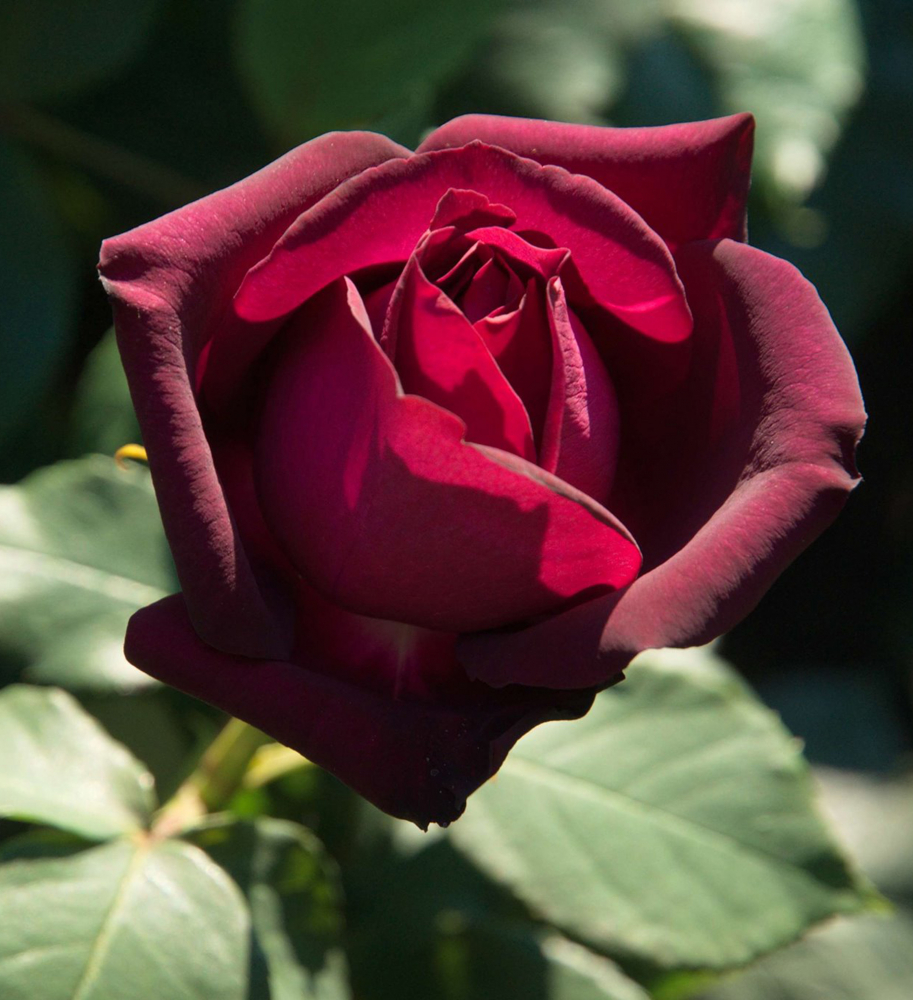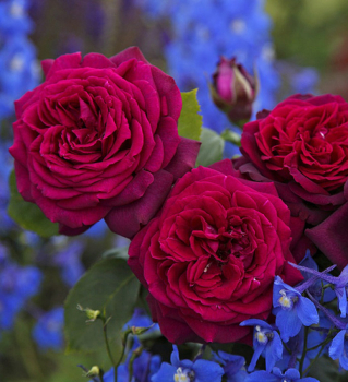 Neprehliadnuteľná ruža s poloplnými intenzívne červenými kvetmi atraktívnymi pre včely.
