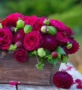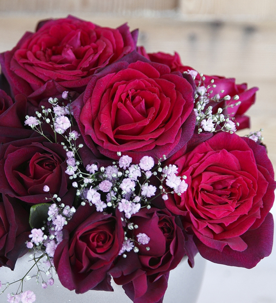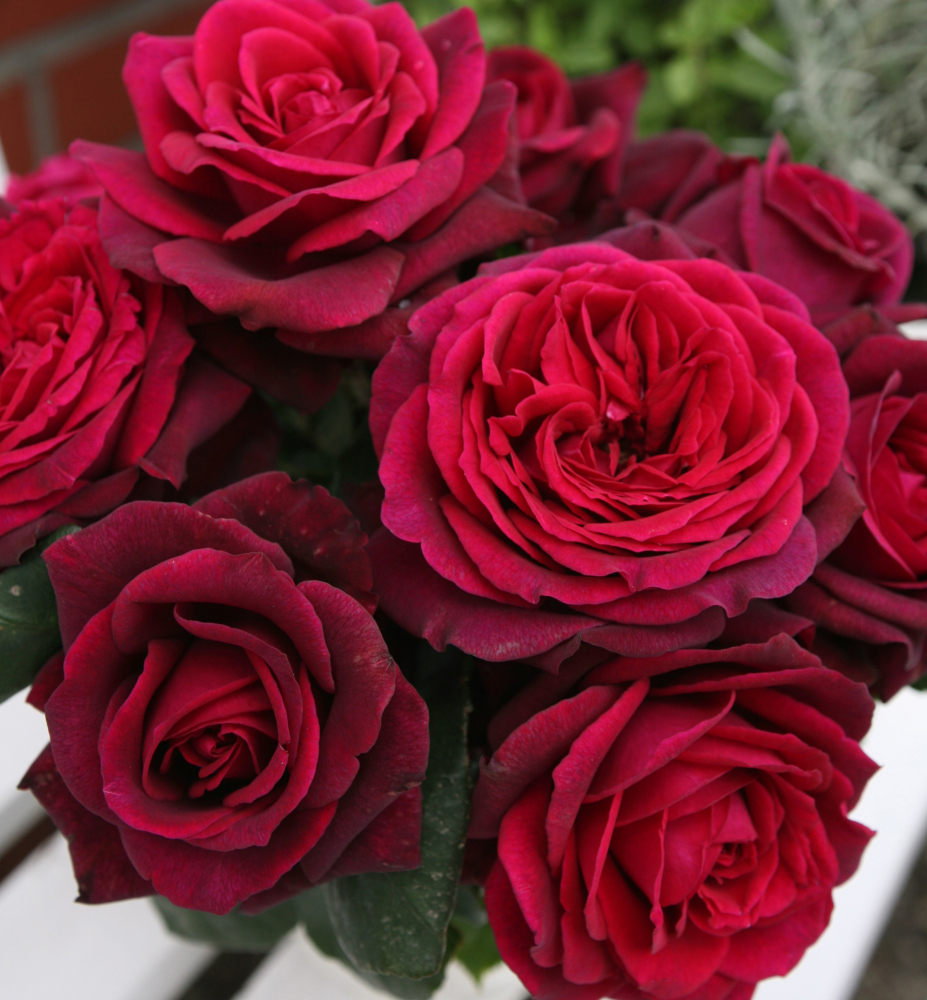 Okúzľujúca ruža v kombinácii krémovo bieleho stredu s višňovo červenými okrajmi.