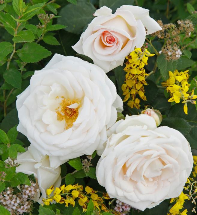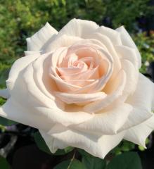 Nostalgická odroda ruže s plnými krémovo bielymi kvetmi.