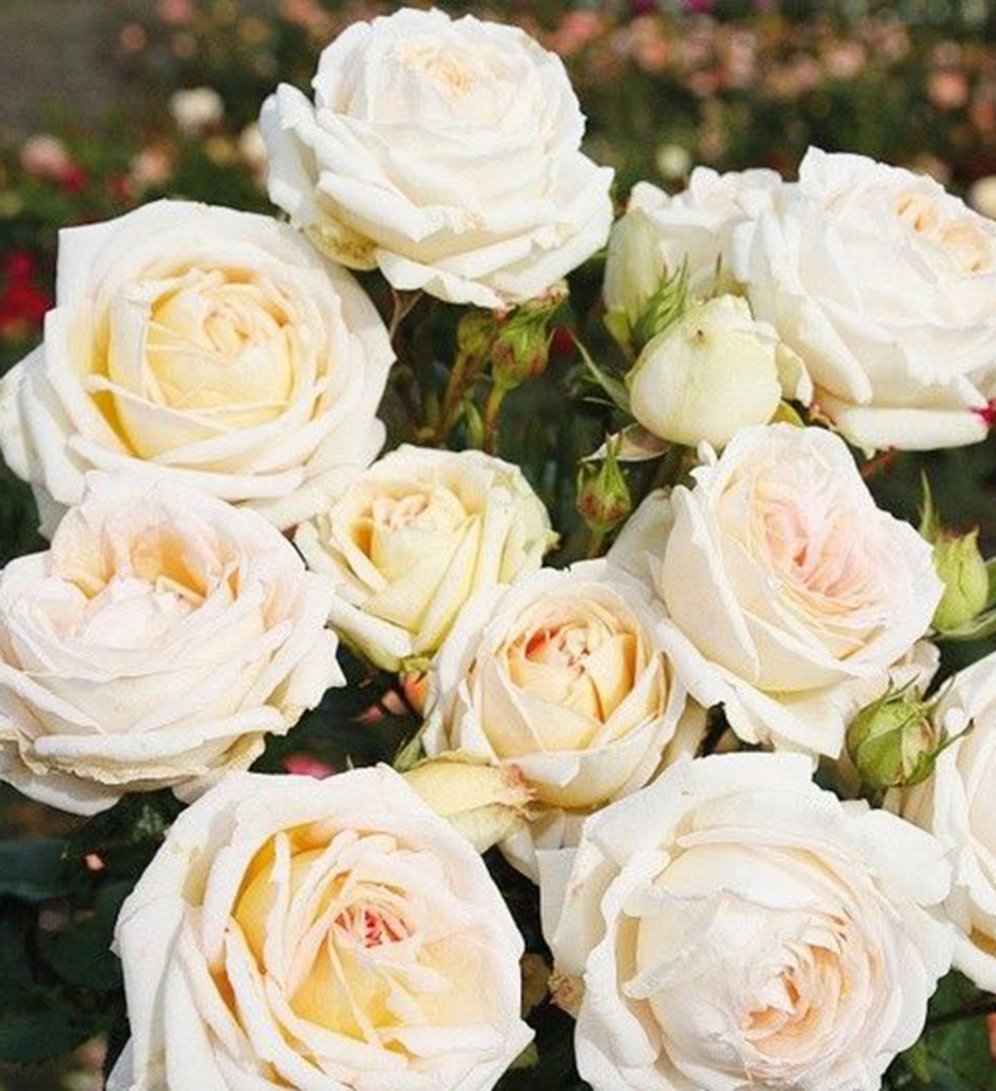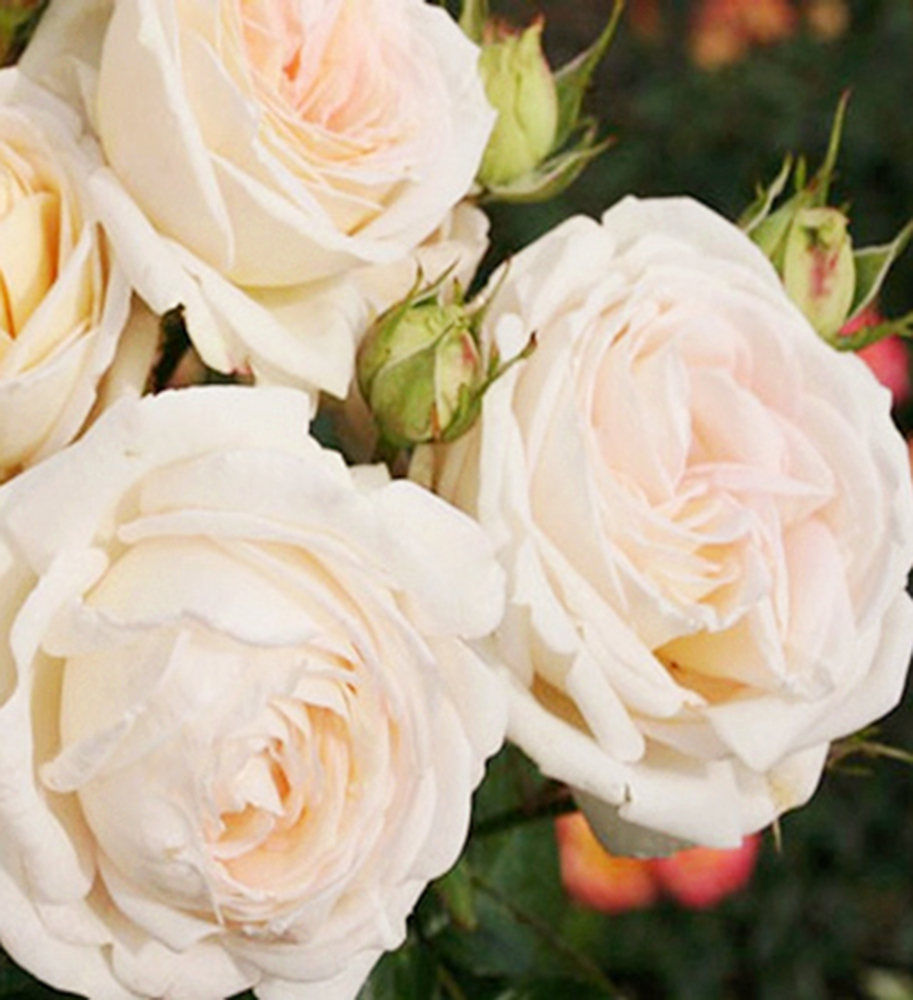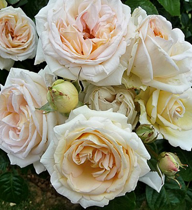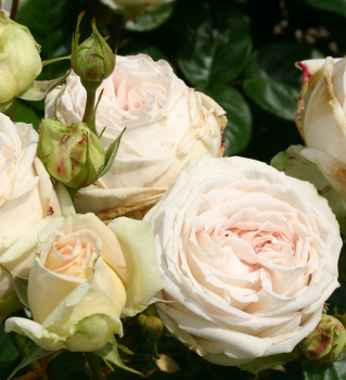Nostalgická odroda ruže s plnými krémovo bielymi kvetmi.
