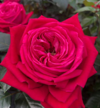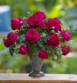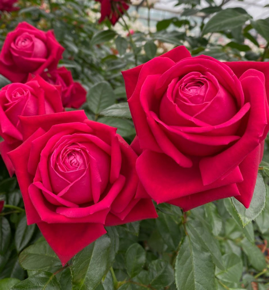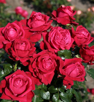 Neprehliadnuteľná ruža s poloplnými intenzívne červenými kvetmi atraktívnymi pre včely.