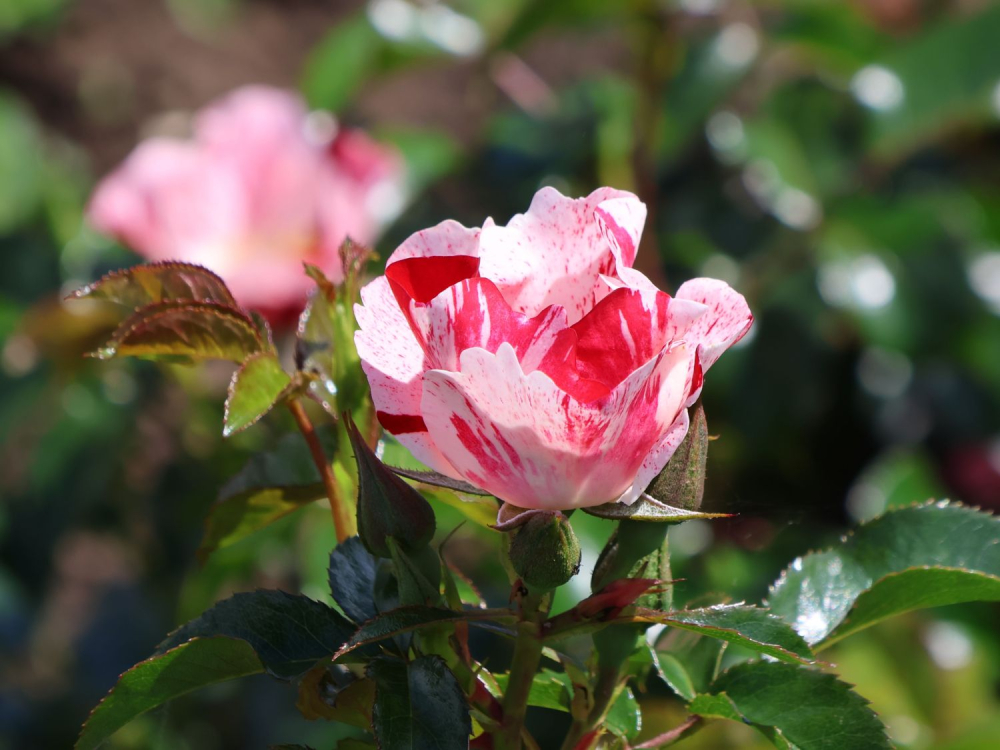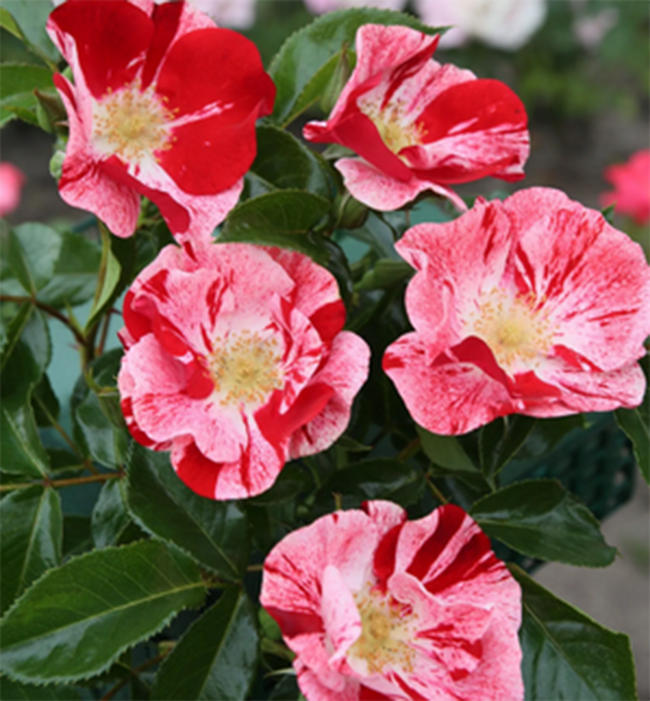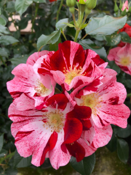 Charakteristika: Ruža ´SIMSALABIM´ nás vnáša do sveta mágie a rozprávok vďaka nádherným kvetom v unikátnej farebnej kombinácii. Toto čarovné zaklínadlo zachytené v názve sa začína písať na krémovobielych okvetných lístkov. Okraje lupienkov sú sfarbené do kontrastných višňovočervených odtieňov. Unikátna nepravideľná výplň je svetloružových až červených odtieňov. Stred kvetu tvoria zlatožlté piestiky. Kvety vo veľkosti 6-7 cm dopĺňajú tmavo zelené, lesklé a oválne listy s jemne ozubenými okrajmi. Rastie do výšky 0,8 m a šírky 0,5 m. Vyšľachtená bola v roku 2023 a zároveň získala ocenenie ADR.