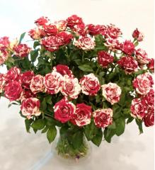 Okúzľujúca ruža v kombinácii krémovo bieleho stredu s višňovo červenými okrajmi.