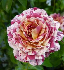 Excelentná ruža s nostalgickými kvetmi nádhernej kombinácii ružovej a bielej farby.