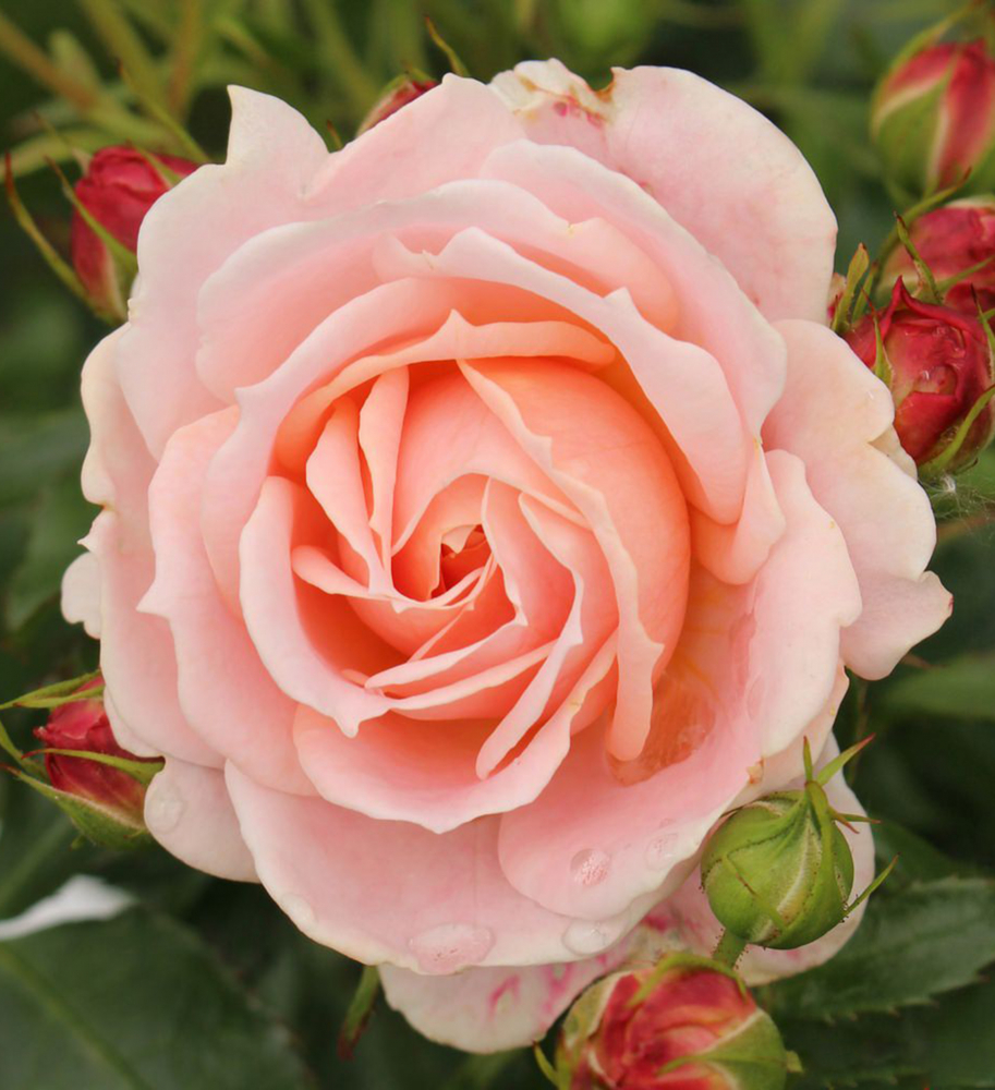 Miniruža s unikátnymi krémovo-ružovými kvetmi so zelenkastým nádychom.
