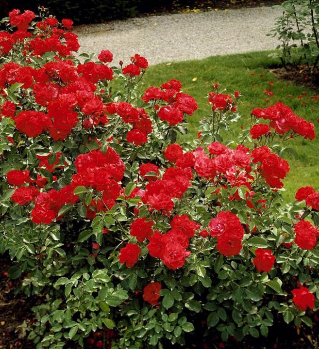 Charakteristika: Kompaktná, nižšia odroda ´NINA WEIBULL´ kvitne celú sezónu až do prvých mrazov žiarivo červenými kvetmi so zamatovým nádychom. Listy sú tmavozelené, kopijovitého tvaru, mierne lesklé s dobrou odolnosťou voči chorobám a mrazom. Vďaka nižšiemu rastu je vhodná na výsadbu do menších záhrad, do črepníkov na terasy, balkóny. Vyšľachtená bola v roku 1961 dánskymi šľachtiteľmi.