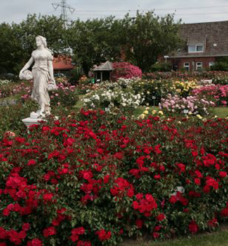 Nostalgická odroda ruže s plnými krémovo bielymi kvetmi.