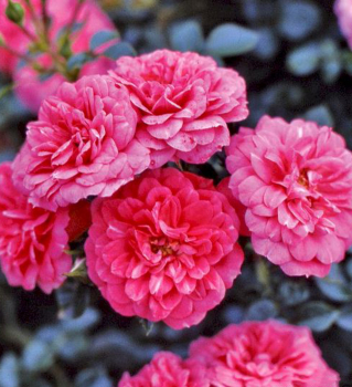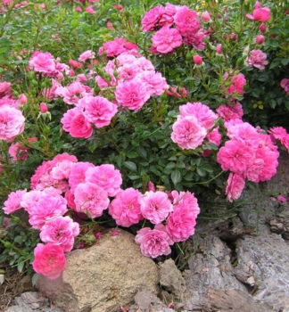 Mnohokvetá ruža s atraktívnymi poloplnými kvetmi ružovej farby s príjemnou vôňou.