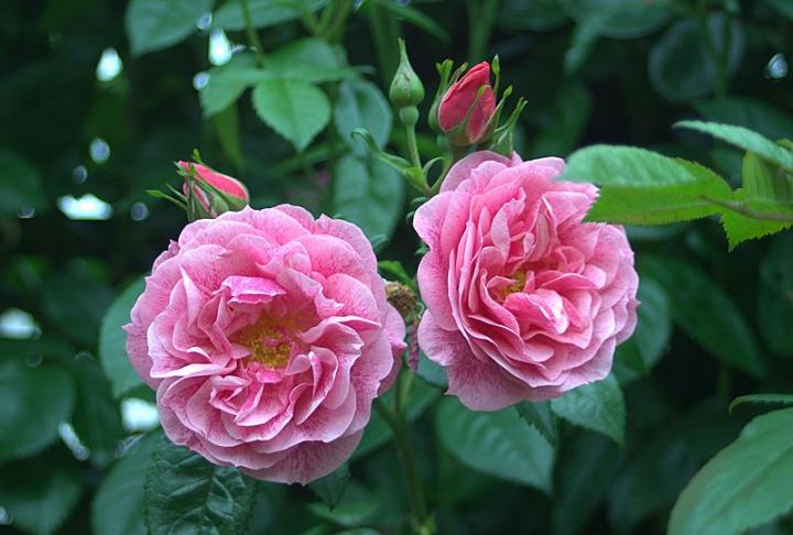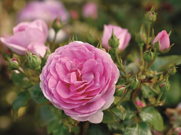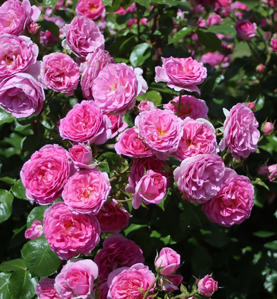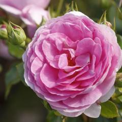 Mnohokvetá ruža s plnými nostalgickými kvetmi romantickej ružovej farby.