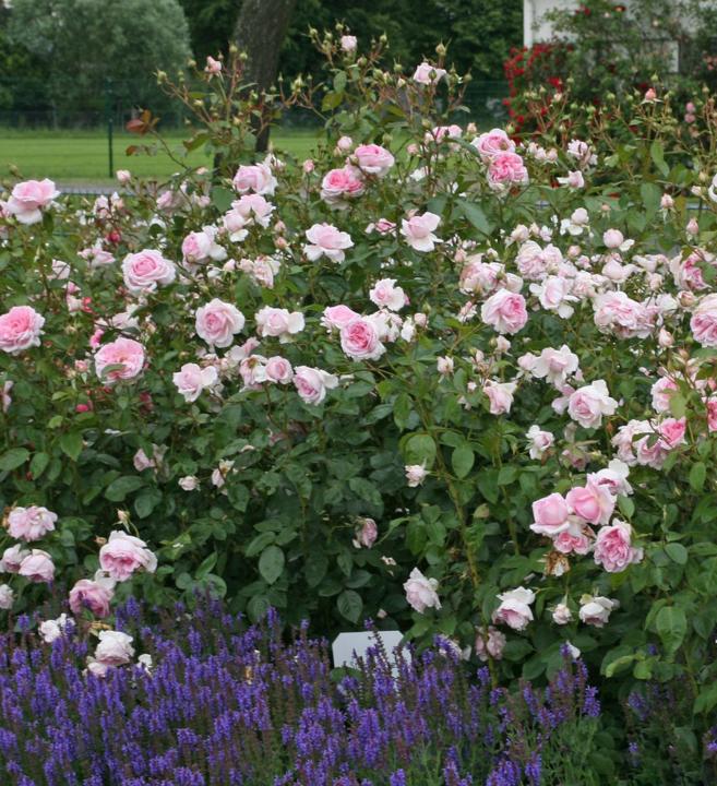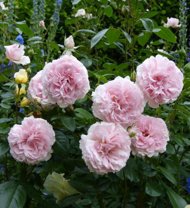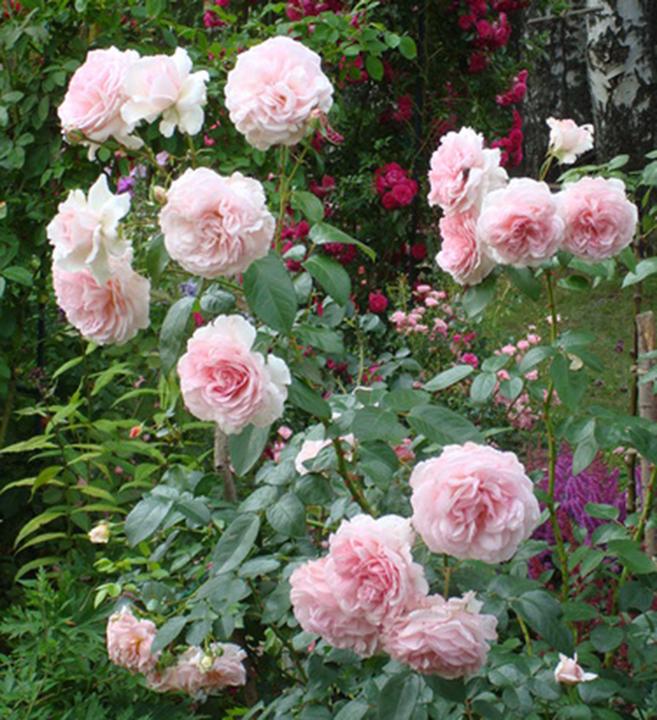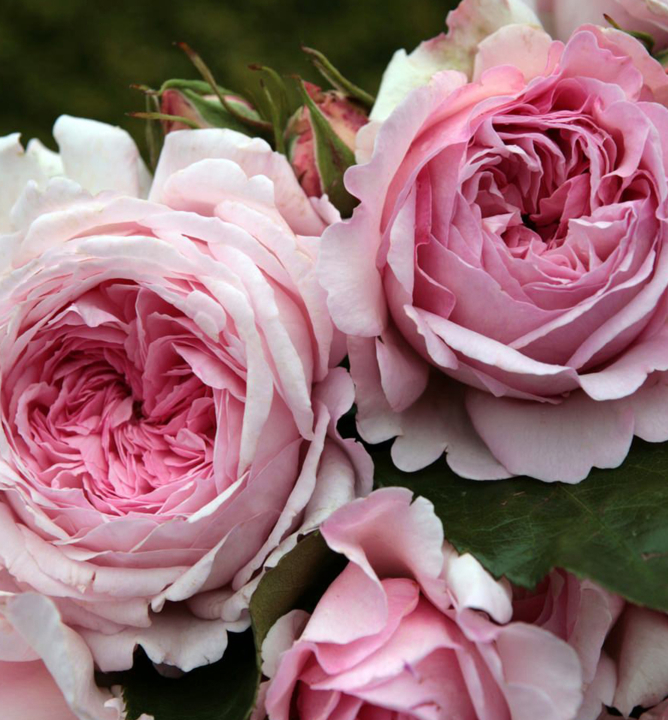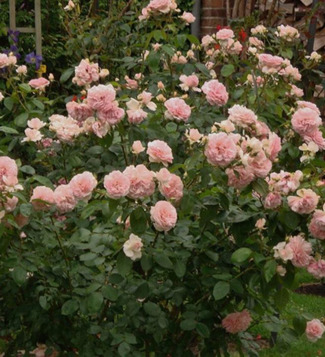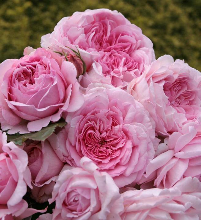 Mnohokvetá ruža s plnými nostalgickými kvetmi romantickej ružovej farby.