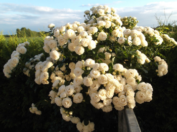 Impozantná odroda na kmienku s extra veľkými strapcami zlatožltých kvetov.
