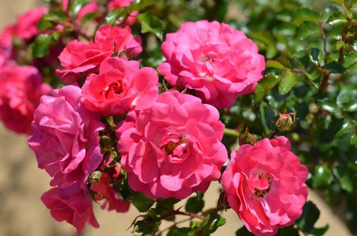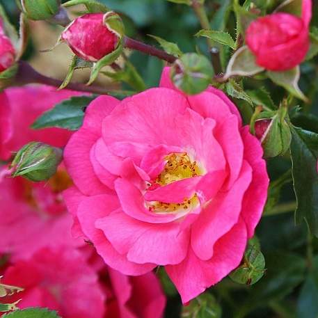 Mnohokvetá ruža s atraktívnymi poloplnými kvetmi ružovej farby s príjemnou vôňou.
