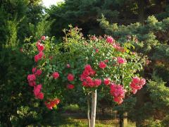 Pôvabná stromčeková ruža s romantickou ružovou farbou.