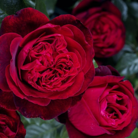 Neprehliadnuteľná ruža s poloplnými intenzívne červenými kvetmi atraktívnymi pre včely.