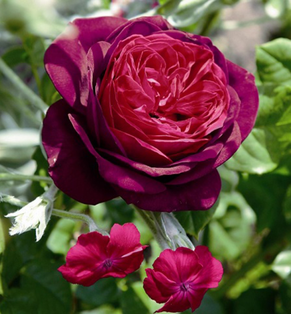 Nostalgická odroda ruže s plnými krémovo bielymi kvetmi.