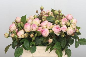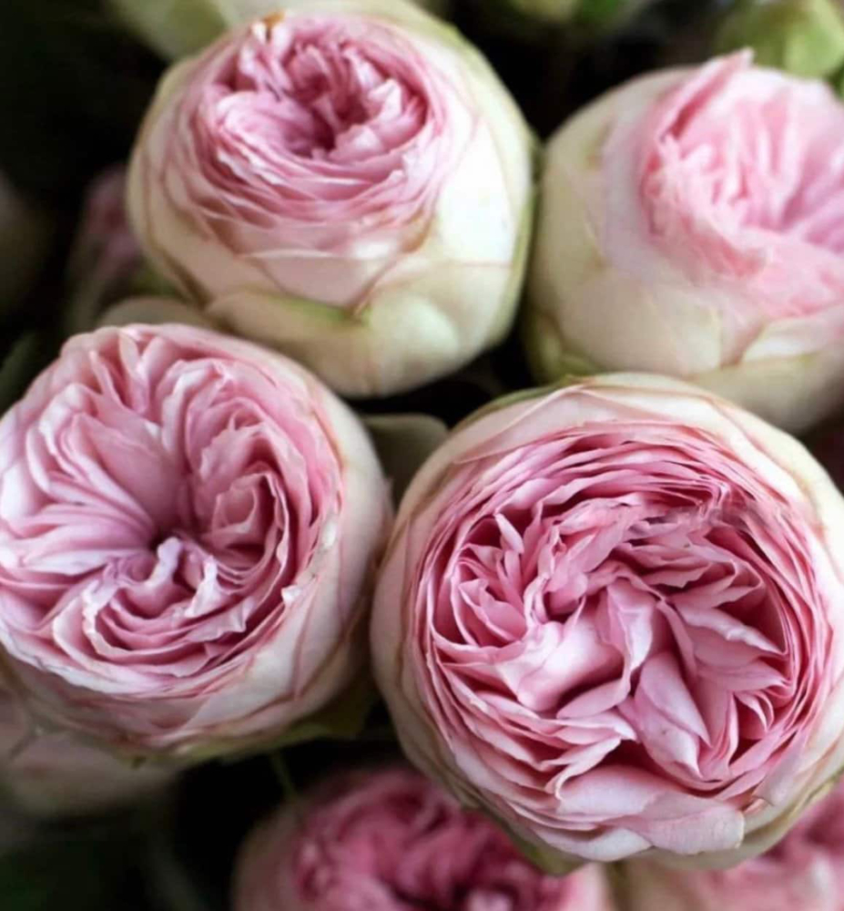 Miniruža s unikátnymi krémovo-ružovými kvetmi so zelenkastým nádychom.