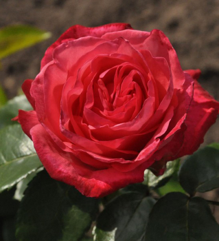 Neprehliadnuteľná ruža s poloplnými intenzívne červenými kvetmi atraktívnymi pre včely.