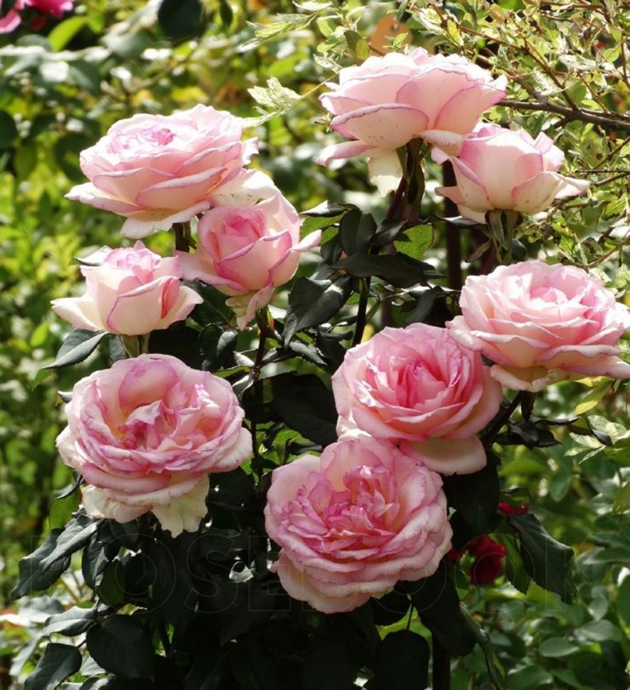 Mnohokvetá ruža s atraktívnymi poloplnými kvetmi ružovej farby s príjemnou vôňou.
