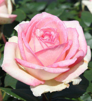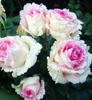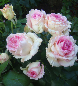 Excelentná ruža s nostalgickými kvetmi nádhernej kombinácii ružovej a bielej farby.