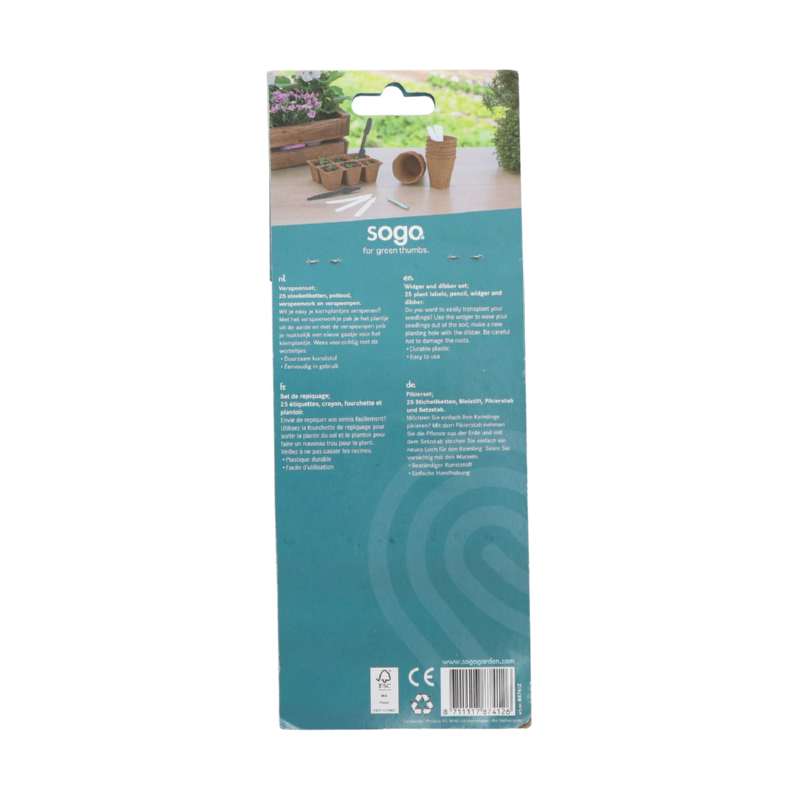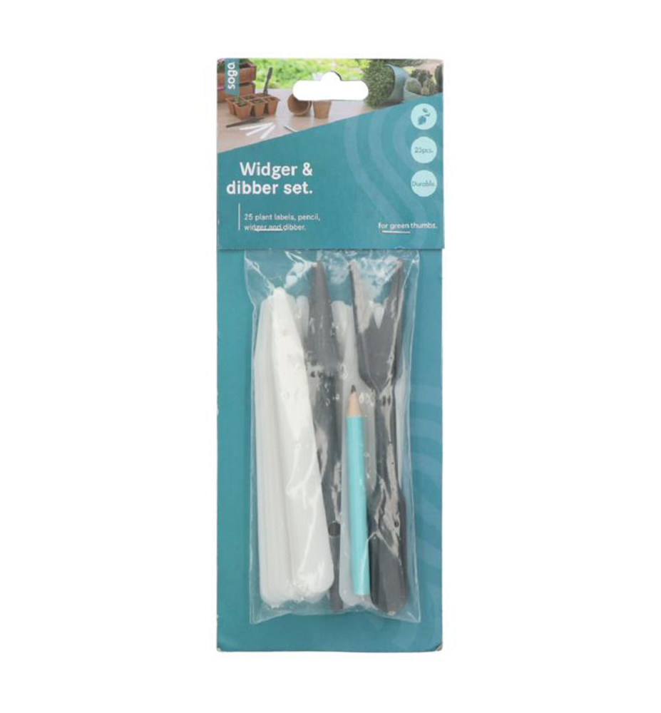 Charakteristika: Sada obsahuje plastový pikírovací kolík a presádzaciu lyžičku, ceruzku a 25 ks plastových štítkov na označenie rastlín. Sada je balená v praktickom balení.