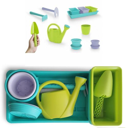 Charakteristika: Veľká sada pre malých záhradníkov je ideálna zábava! Obsahuje všetko potrebné na pestovanie byliniek a ďalších rastlín. Súčasťou setu je detské náradie, sada mini kvetináčov, dva druhy kvetináčov a podmisky. Náradie je vyrobené z kvalitného plastu.