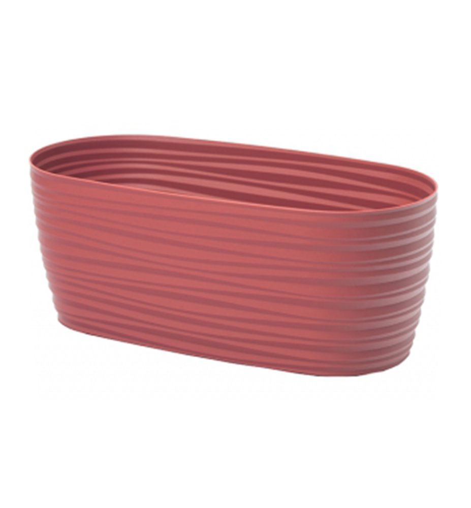 Moderný plastový kvetináč farby marsala s jemnou vlnitou kresbou.